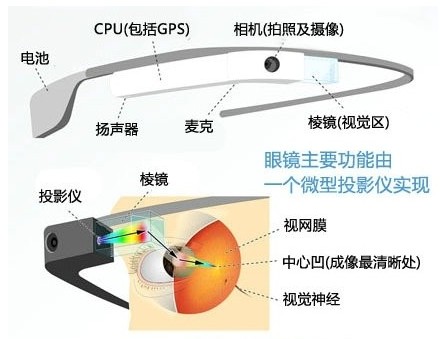 Google眼鏡包含了很多高科技,包括藍(lán)牙,Wi-Fi,揚聲器,照相機,麥克風(fēng),觸摸盤和幫助你探測傾斜度的陀螺儀。還有最重要的和你手指大小類似的屏幕,能夠幫助你展示需要的信息。