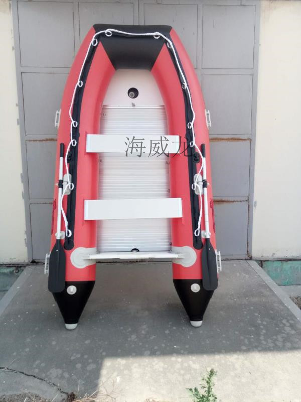 海威龍鋁合金底板游艇(金明游艇SA系列),船艙前U后突出兩尖,擁有一整塊尾板,尾板位置較其他家產(chǎn)品位置偏后,增大了船艙面積。在復(fù)雜水域中(復(fù)雜水域指的是;如亂石、荊刺木樁多的水域)普通充氣船的底板很容易被刺破或者劃傷,唯有鋁合金或塑鋼底板的沖鋒舟,更加結(jié)實(shí)穩(wěn)固,不怕被刺破