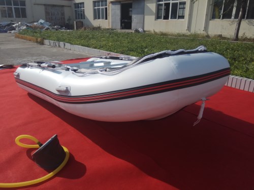 3,V型船底(如內(nèi)含充氣龍骨的船底)能很好的將重心置于中心位置,使船在被風浪拍打時不會嚴重搖晃而失去重心最終被拍翻。而且V型底的充氣橡皮艇對水的阻力會減小,可以提高航行速度。V型船底再加上充氣橡皮艇翹頭技術(shù),對于想要進江入海的充氣橡皮艇來說簡直完美。